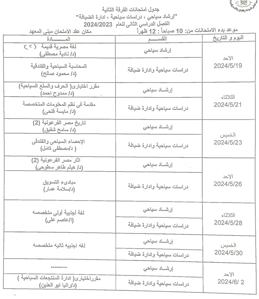 الدبلوم المهنى للارشاد السياحى